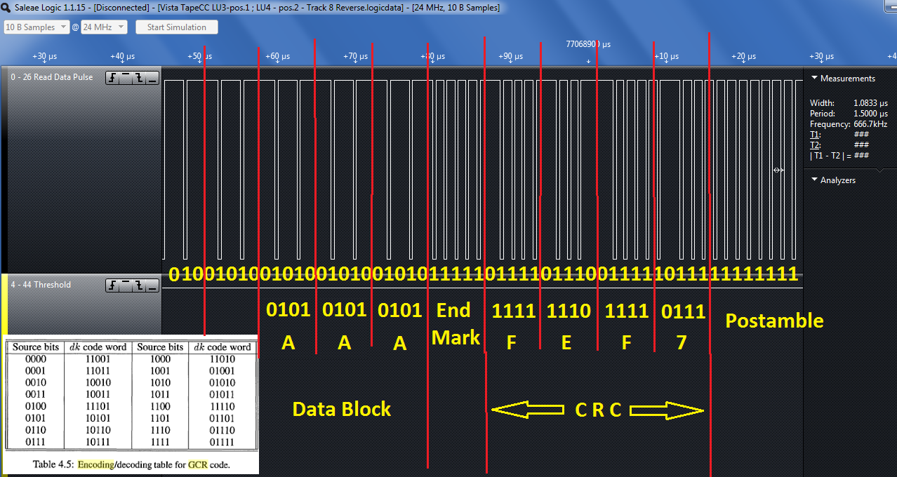 So, the only question here is, this '11111' in between the Sync and the Reverse Sync is not mentioned in the description above, but everything else is just so right-on, I can't dismiss it all just because of this. So, is this a variation which disqualifies this from being from a Kennedy 6450? Or is this just something that the documenters forgot to mention? Is it the End Mark that is mentioned above in the Data Block Format?