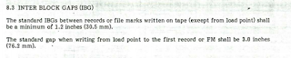 The standard IBGs between records or file marks written on tape (except from load point) shall